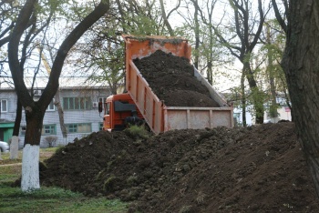 Также вход в парк оформили декоративными светодиодными буквами, на территорию завозят землю для планировки, а по периметру установлены опоры для 16 видеокамер, которые будут выводить изображение на контроль ЕДДС.