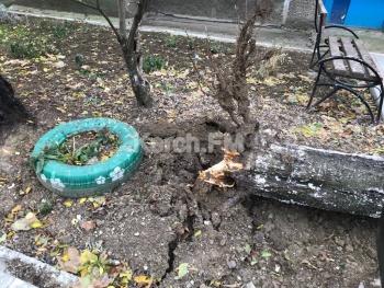 Напомним, в Керчи из-за ветра дерево упало на тротуар напротив 11 школы