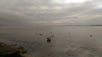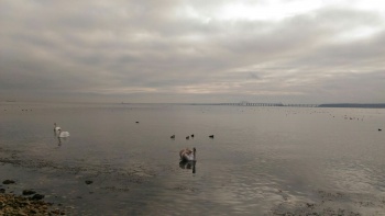 На пляже Сморжевского в Керчи зимуют лебеди