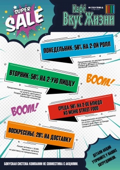 11.12, вторник: акция дня - «50% на вторую порцию пиццы».