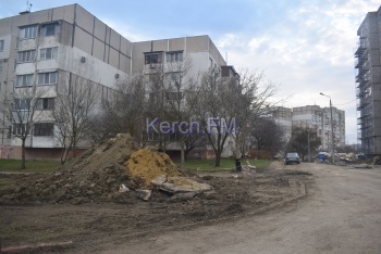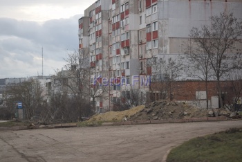 На Блюхера уже несколько дней подряд от дома для депортированных прокладывают канализационный коллектор. По пути производства работ выкопали деревья, - передает Керчь.ФМ.