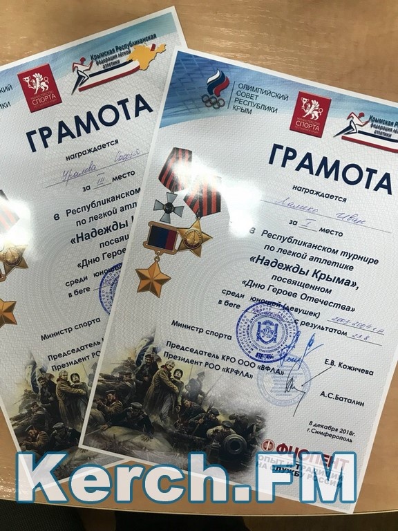 В Симферополе 8 декабря прошел республиканский турнир по легкой атлетике «Надежды Крыма», посвященный «Дню Героев Отечества». В соревнованиях приняли участие более 300 участников 2003 г.р. и моложе, а также воспитанники ДЮКФП Керчи.
