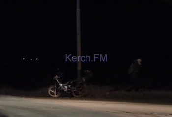 Как передает корреспондент Керчь.ФМ с места аварии, автомобиль уже увезли. Мопед поставили у фонарного столба.  На дороге разбросаны осколки.