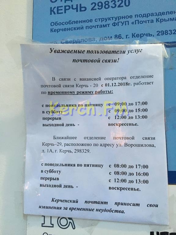В Керчи не хватает сотрудников для работы на почте. Некоторые почтовые отделения переводят на временный режим работы, - передает Керчь.ФМ.