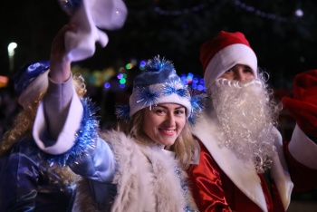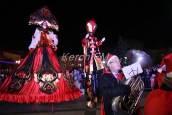 В Керчи 22 декабря новогодние празднования открыл парад Дед Морозов. Во главе с участниками шли актеры на ходулях, один из них выпускал пламя огня, - передает Керчь.ФМ.