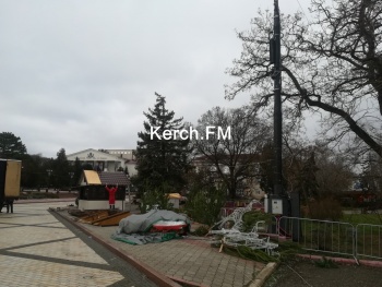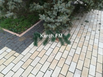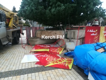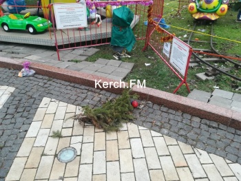 В Керчи ночью ветер снова разломал защитные щиты у новогодней елки. Кроме этого, пострадали и другие декоративные заборчики, - передает Керчь.ФМ