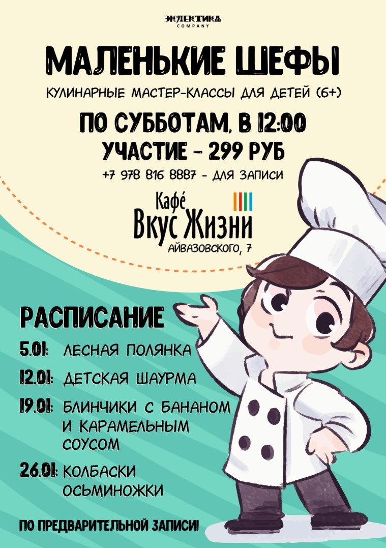 по субботам для ребят от 6-ти лет - кулинарные мастер-классы;