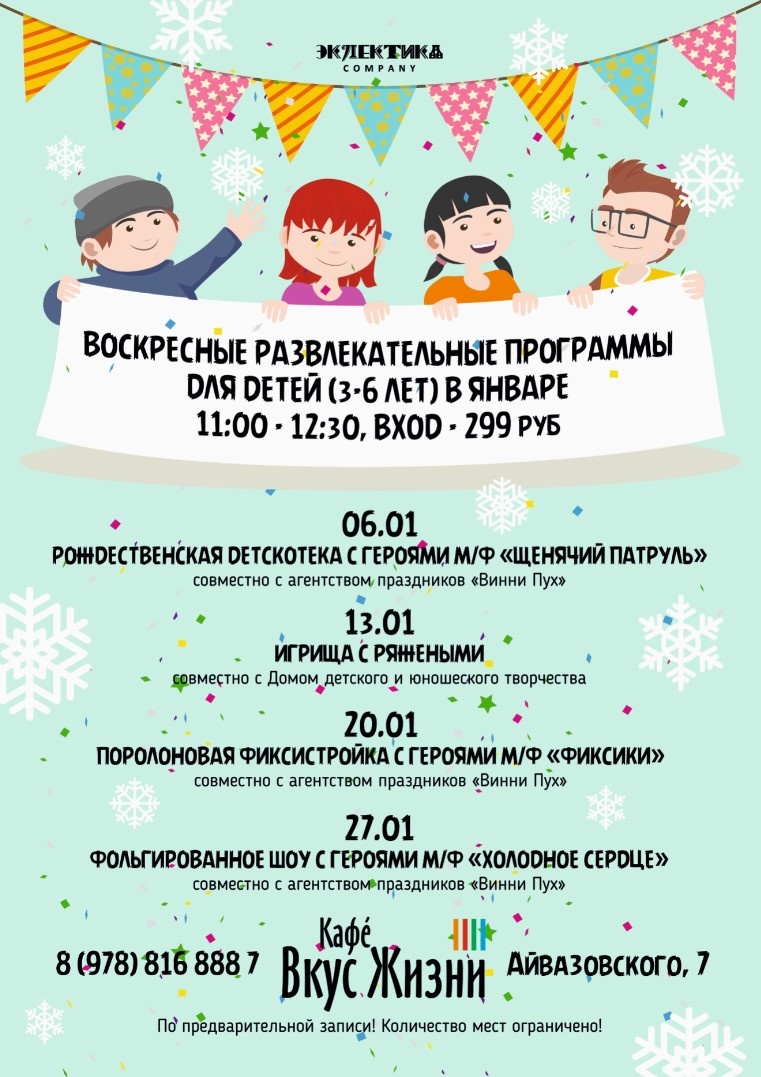 Команда семейного кафе предлагает родителям ознакомиться с афишей событий на январь и записаться на приглянувшиеся мероприятия.