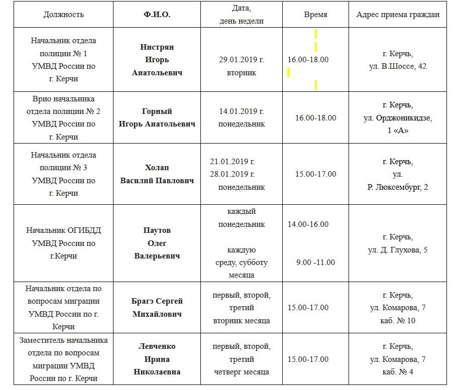 приема граждан начальниками отделов полиции УМВД России по г. Керчи