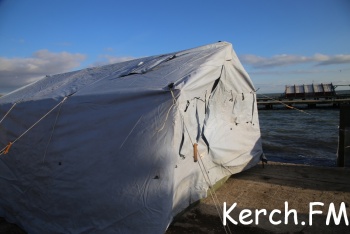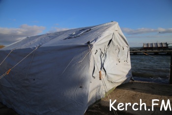 Около площадки для купаний установили палатку, где керчане смогут переодеться и согреться.