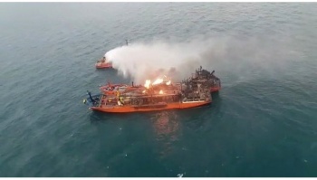 В ведомстве отметили, что на месте ЧП продолжается горение сжиженного природного газа, который перевозили суда. Район поиска пропавших 10 моряков будут обследовать 15 кораблей и судов.