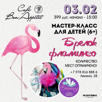 03.02, в воскресенье, будем создавать с ребятами красочный брелок в виде розового фламинго.