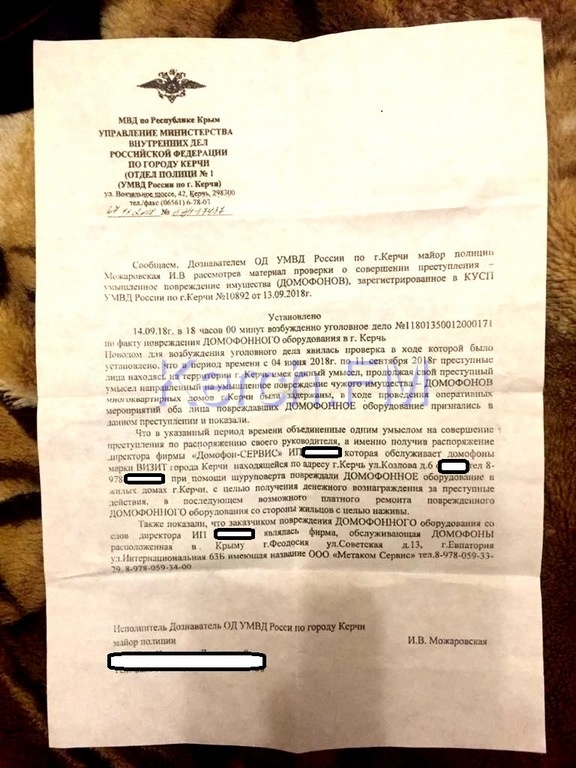 В Керчи вандалы портили домофоны по заказу фирмы по их ремонту