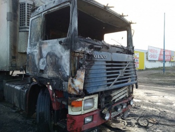 В соцсети разместили виде, где видно, что кабина грузового автомобиля Вольво полностью охвачена огнем.