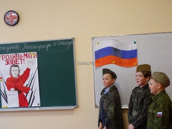 Урок был посвящен 75-летию снятия блокады Ленинграда. Ребята читали стихи, воспоминания о тех страшных днях в годы Великой Отечественной войны.