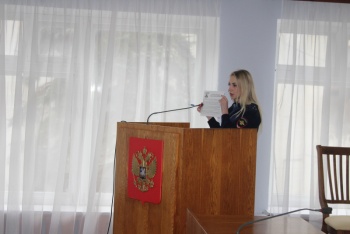Перед присутствующими выступила старший специалист направления по связям со СМИ ОМВД России по Ленинскому району старший лейтенант внутренней службы Анастасия Журавская со своим докладом, в котором привела статистические данные полиции по зарегистрированным и раскрытым преступлениям данного вида.