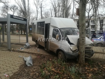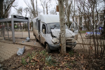 В Керчи 10 февраля на улице Орджоникидзе произошла авария. Маршрутка снесла урну и въехала в дерево. Об этом с места происшествия сообщает журналист Керчь.ФМ.
