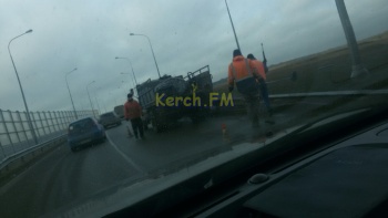 На путепроводе по ШГС в Керчи коммунальные службы моют отбойники