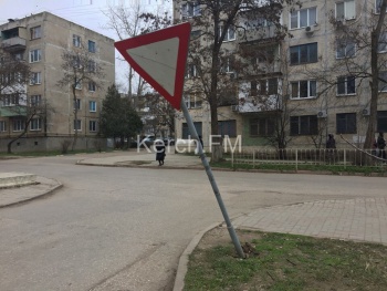 В редакцию Керчь.ФМ обратились постоянные читатели и сообщили, что на Сморжевского дорожный знак может упасть на людей или машины.