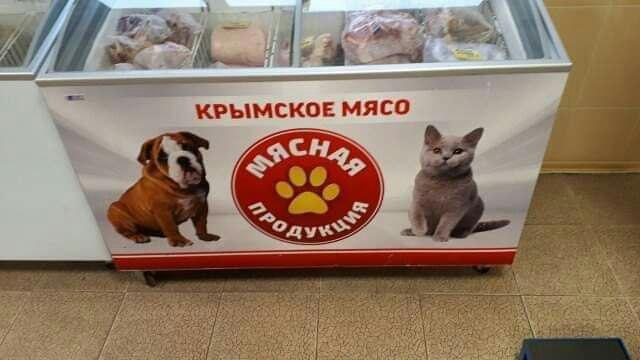«Необычное» крымское мясо предлагают в продаже в одном из магазинов полуострова. Непонятно — на мороженом ларе изображены лучшие клиенты мясной продукции или сырьё для неё. Об этом сообщает КИА, - передает Керчь.ФМ