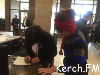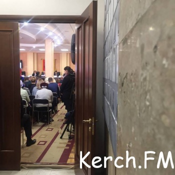 Аксенов пообещал вернуться в Керчь через две недели с таким же совещанием. В холле горсовета активистов принимают представители профильных министерств.