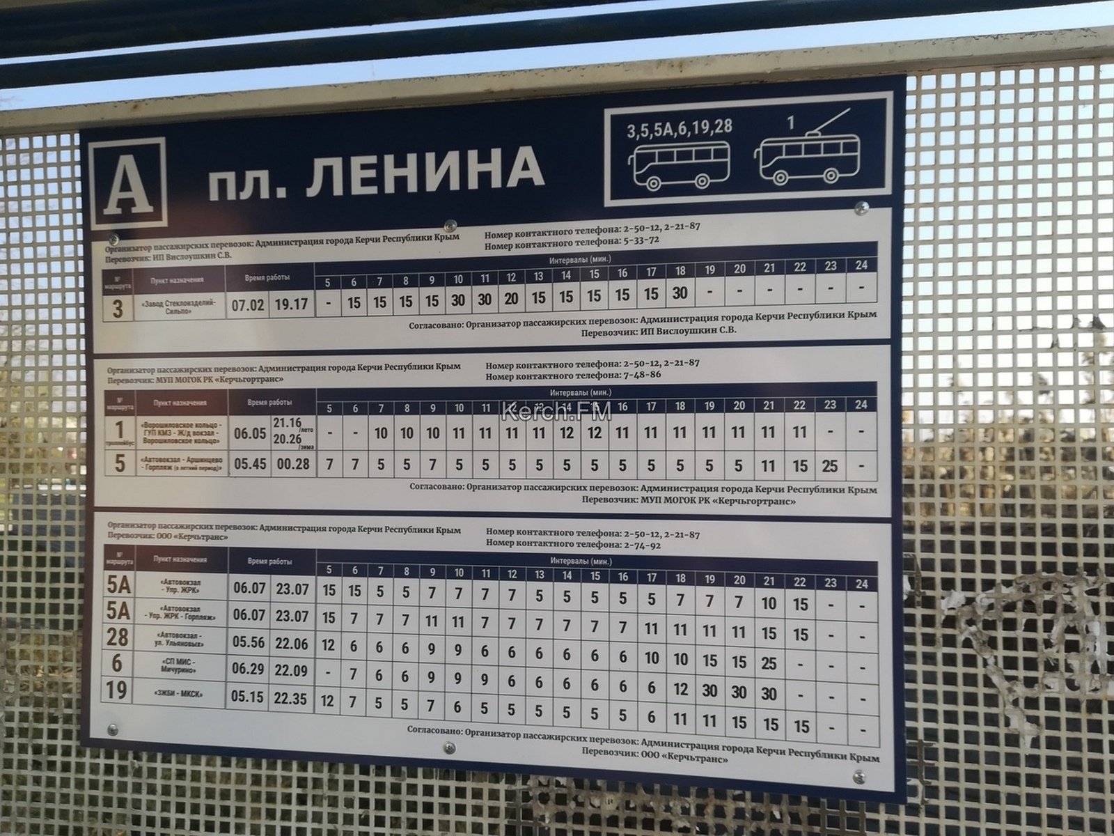 В Керчи на автобусных остановках появились таблички с информацией о движении общественного транспорта. На таблице указан вид транспорта: автобус или троллейбус, время работы по маршруту и интервалы движения в каждый час, - передаёт Керчь.ФМ.