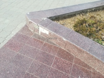 На парапете рядом со стеллой с золотым грифоном в Керчи начала отваливаться плитка. Фото в Керчь.ФМ прислали постоянные читатели. Керчане отметили, что некоторые плитки еще остались на месте, а некоторые - убрали.