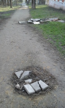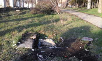 Люки за школой в Керчи закрыли старыми дверьми и мусором