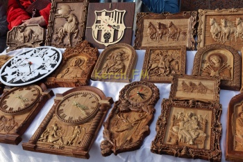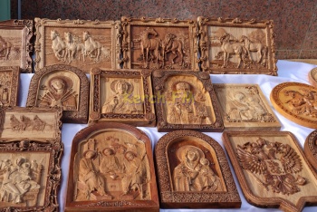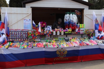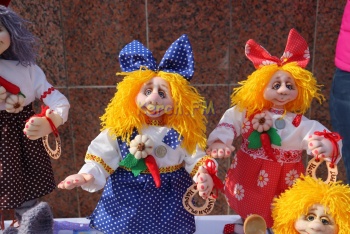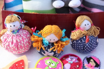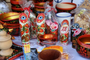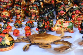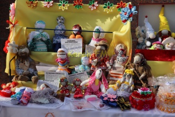 Традиционно пользуются спросом бюсты Путина и Сталина, а также пряники. Никого не оставили равнодушными вязаные зайцы и щекастые куклы с живыми глазами. Самый мирный продавец оружия - игрушечных деревянных сабель и топориков под старину, предлагал устроить ими игрушечные бои. А стоящий напротив серьезный дед продавал якоря на цепях и деревянных, расписанных под хохлому, поросят.