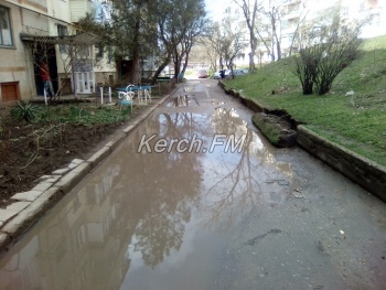 В редакцию Керчь.ФМ обратились жители дома по Олега Кошевого, 20. На их внутридворовой дороге всегда стоит вода. Глубокие и непроходимы лужи не высыхают с осени до самого лета. А теперь начал рушиться подпорный бордюр, который держит землю у детской площадки.