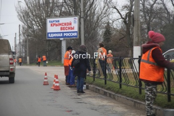 В Керчи 21 марта на улице Кирова и Адмиралтейском проезде люди красят заборы, которые ограждают тротуар от проезжей части. Некоторые рабочие находятся на дороге, не соблюдая технику безопасности, - сообщает корреспондент Керчь.ФМ.