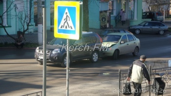 В Керчи 23 марта, утром, перед пешеходным переходом в районе Горьковского кольца, столкнулись два автомобиля. Фото в Керчь.ФМ прислал постоянный читатель.