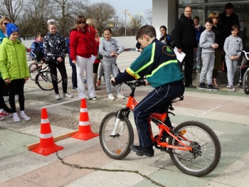 Третьим этапом конкурса стала велоэстафета, в которой участники соревновались в вождении велосипеда на специально оборудованной препятствиями площадке. Учащиеся выполняли упражнения «змейка», «восьмерка», «проезд препятствий» и «остановка».