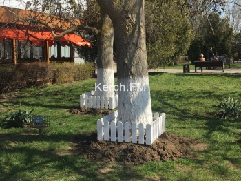 В Керчи на Ленина на клумбах несколько деревьев оградили декоративными заборчиками. Керчане интересуются зачем это сделали?