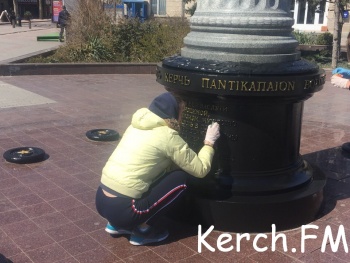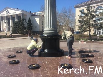 В Керчи 5 апреля рабочие приводили в порядок стелу с золотым грифоном на улице Ленина. Коммунальщики окрашивали ее частично в черный цвет, а надписи на ней в золотой, - передает Керчь.ФМ