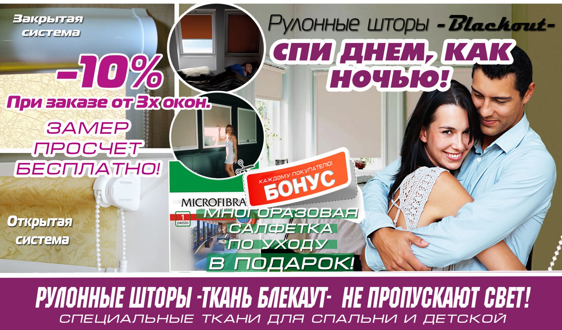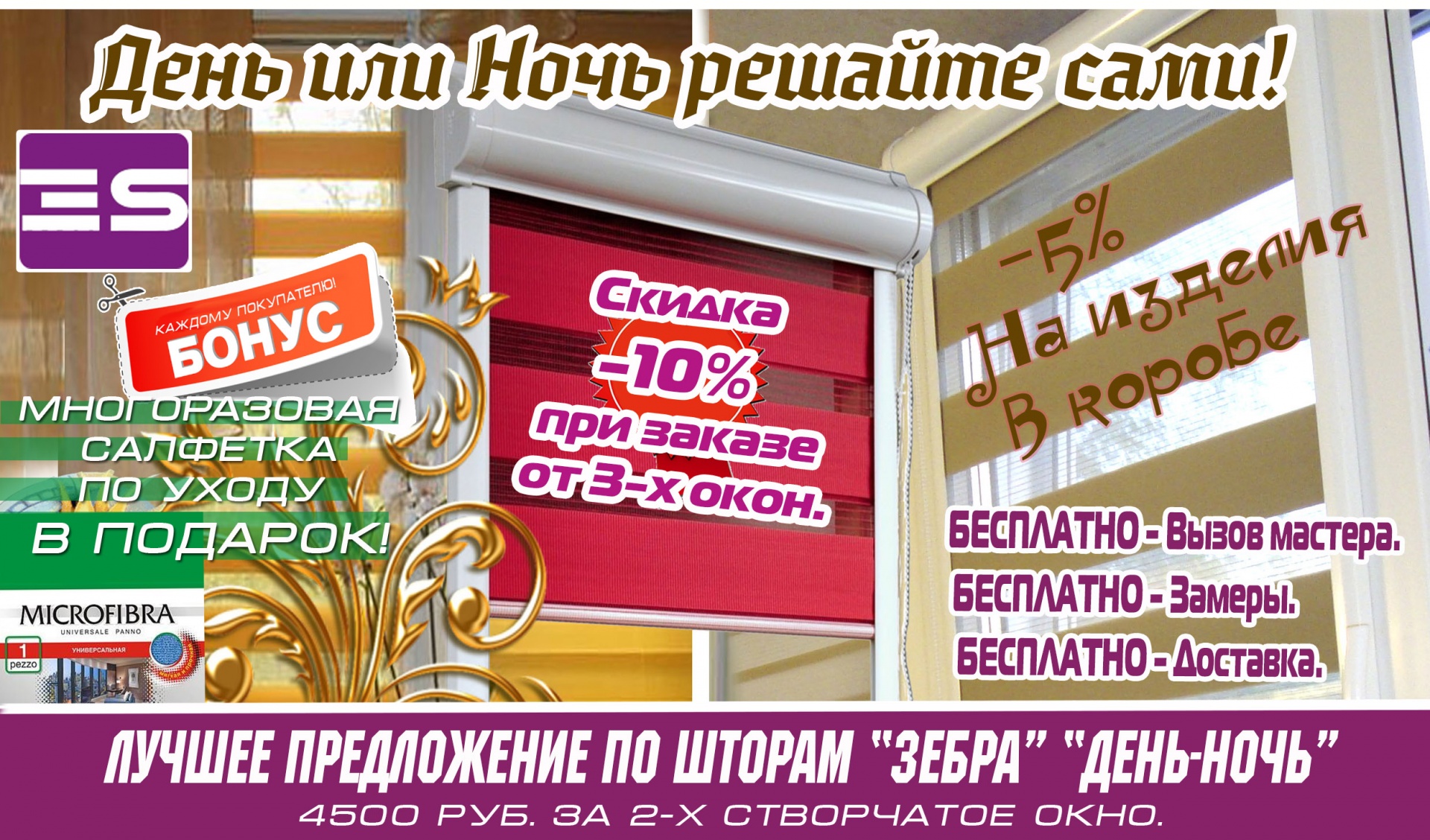 Всем заказчикам независимо от величины заказа специальная многоразовая салфетка из микрофибры по уходу за жалюзи в подарок.