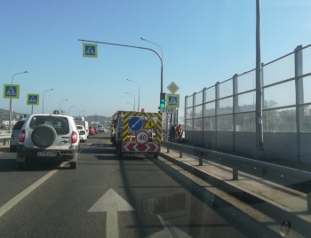В Керчи с утра 9 апреля на путепроводе по ШГС идут работы. Как передает корреспондент Керчь.ФМ, здесь устраняют последствия вчерашней аварии с грузовиком и «БМВ».