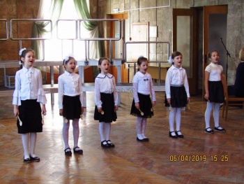 В фойе городского культурного центра им. Ю.Богатикова 6 апреля звучала вокальная и хоровая музыка: выступали учащиеся класса сольного пения - солисты и вокальный квартет учениц 2-го класса преподавателя Конюковой Натальи Михайловны, вокальные ансамбли «Дебют» (младшие классы) и «Каприс» (старшие классы), руководитель коллективов Чепурных Ирина Петровна.