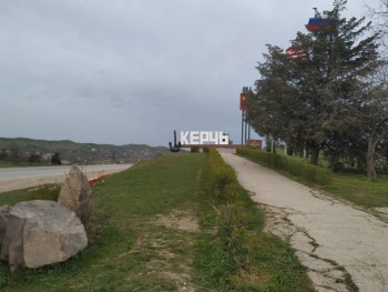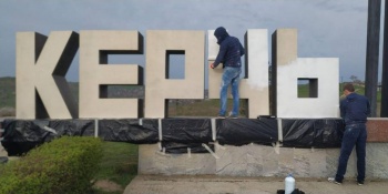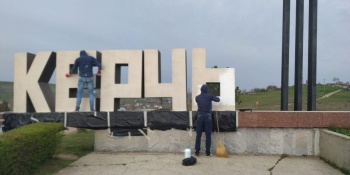 На въезде в Керчь светоотражающей краской выкрашено "имя" города, обновлены балясины, парапеты, бордюры.
