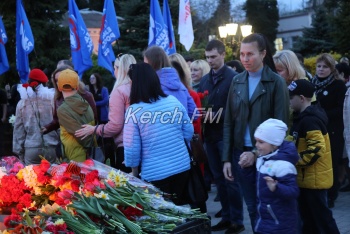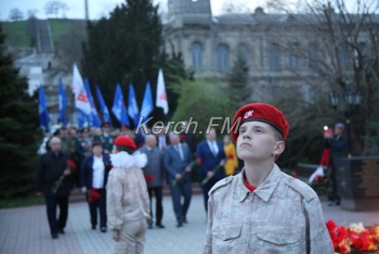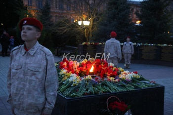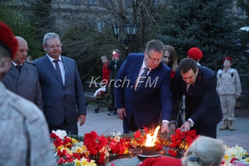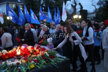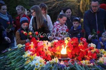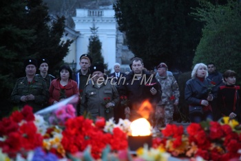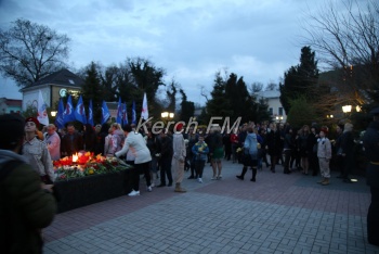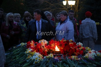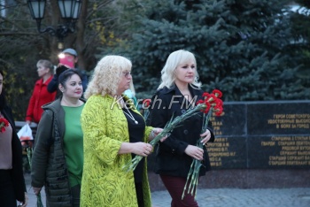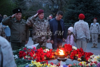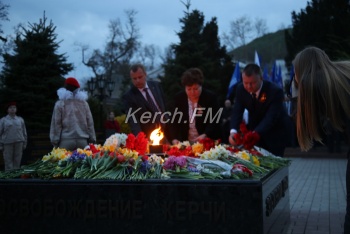 В Керчи 11 апреля вечером продолжились мероприятия, посвященные празднованию 75-летия освобождения города от немецко-фашистских захватчиков. Керчане вместе с властями города и приглашенными гостями возложили цветы к вечному огню в сквере Славы