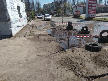 «Очередная жалоба на наш «доблестный водоканал», вчера на ул. Полевая 3, был «устранен» очередной пробой трубы, водоканальщики, целый день его устраняли, с периодичностью работы 20-30 минут в 1 час (остальное время курили или обсуждали важные политические моменты страны), но через час, после того как они уехали вода опять просочилась на поверхность, вся улица словно после бомбежки, к магазинам подъехать нельзя, а так же перекрыт выезд из дома, просьба повлиять на работу этой службы», - написали керчане