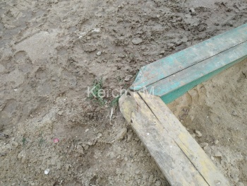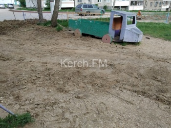 В Керчи сотрудники водоканала после устранения прорыва разгромили детскую площадку. Они забыли все детские конструкции вернуть на свои места. Об этом Керчь.ФМ сообщили жители дома Орджоникидзе, 120.