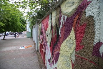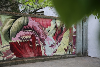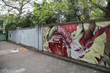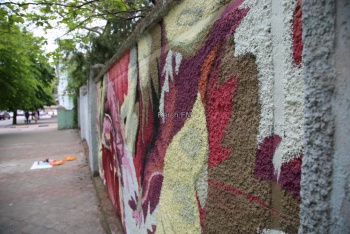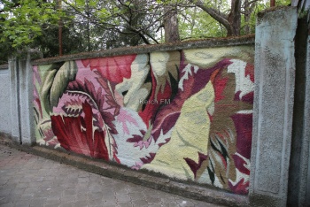 В Керчи на ул. Дубинина художница разрисовывает старый каменный забор, - передаёт Керчь.ФМ. Забор состоит из трех секций - одна из них готова и теперь больше напоминает ворсистый ковер с ярким принтом. Отметим, что третья секция забора имеет большую трещину посередине.