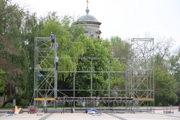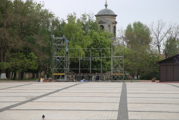 В Керчи на площади Ленина ставят большую сцену, которую привезли в город из Симферополя, - передает Керчь.ФМ. Напомним, 9 мая здесь выступят творческие коллективы города и ВИА «Синяя птица»