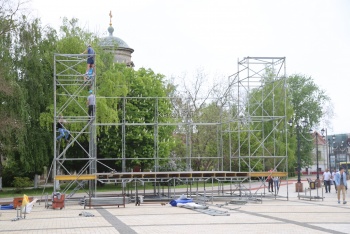 На площади устанавливают сцену к 9 мая