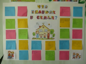 «А в заключении мероприятия приняли участие в создании разноцветного квилта «Что главное в семье?», поделившись своими представлениями об обязательных «кирпичиках», на которых строится крепкая и дружная семья».