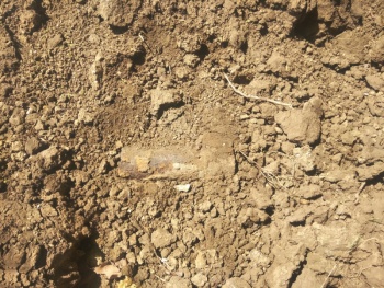При выполнении земельных работ по подготовке площадки к строительству работниками был обнаружен металлический предмет по виду напоминающий снаряд.