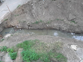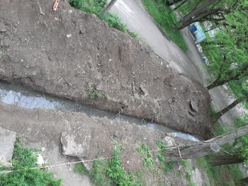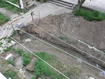 В редакцию Керчь.ФМ обратились читатели, которые сообщили, что во дворе жилого дома водоканал разрыл огромную траншею, которая заполняется канализацией и до сих пор ничего не сделал.