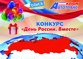 Жителям и гостям Крыма, которые воспользовались услугами автовокзалов и автостанций полуострова в период с 20 мая по 7 июня, предлагается принять участие в конкурсе «День Россия. Вместе», который проходит на официальных страницах предприятия «Крымавтотранс» в социальных сетях - ВКонтакте, Одноклассники, Facebook и Instagram. По итогам конкурса 12-ти победителям будут вручены ценные призы. Главный приз от соорганизатора конкурса Билетик Online - планшет Apple iPad.