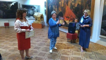 Заместитель генерального директора Н.В. Галченко, заведующая Картинной галереи Т.М. Дашевская встретили новгородских гостей, вручили памятные сувениры ВКИКМЗ в знак дружбы между культурными учреждениями. Кураторам выставок и всем присутствующим в зале была подарена музыкальная программа от керченского вокального ансамбля «Троянда» (руководитель Александр Николаевич Коновалов). Творческий коллектив исполнил произведения советских композиторов, русские народные песни, в том числе «Майский вальс» (сл. М. Ясеня, муз. И. Лученка), «В роще пел соловушка».